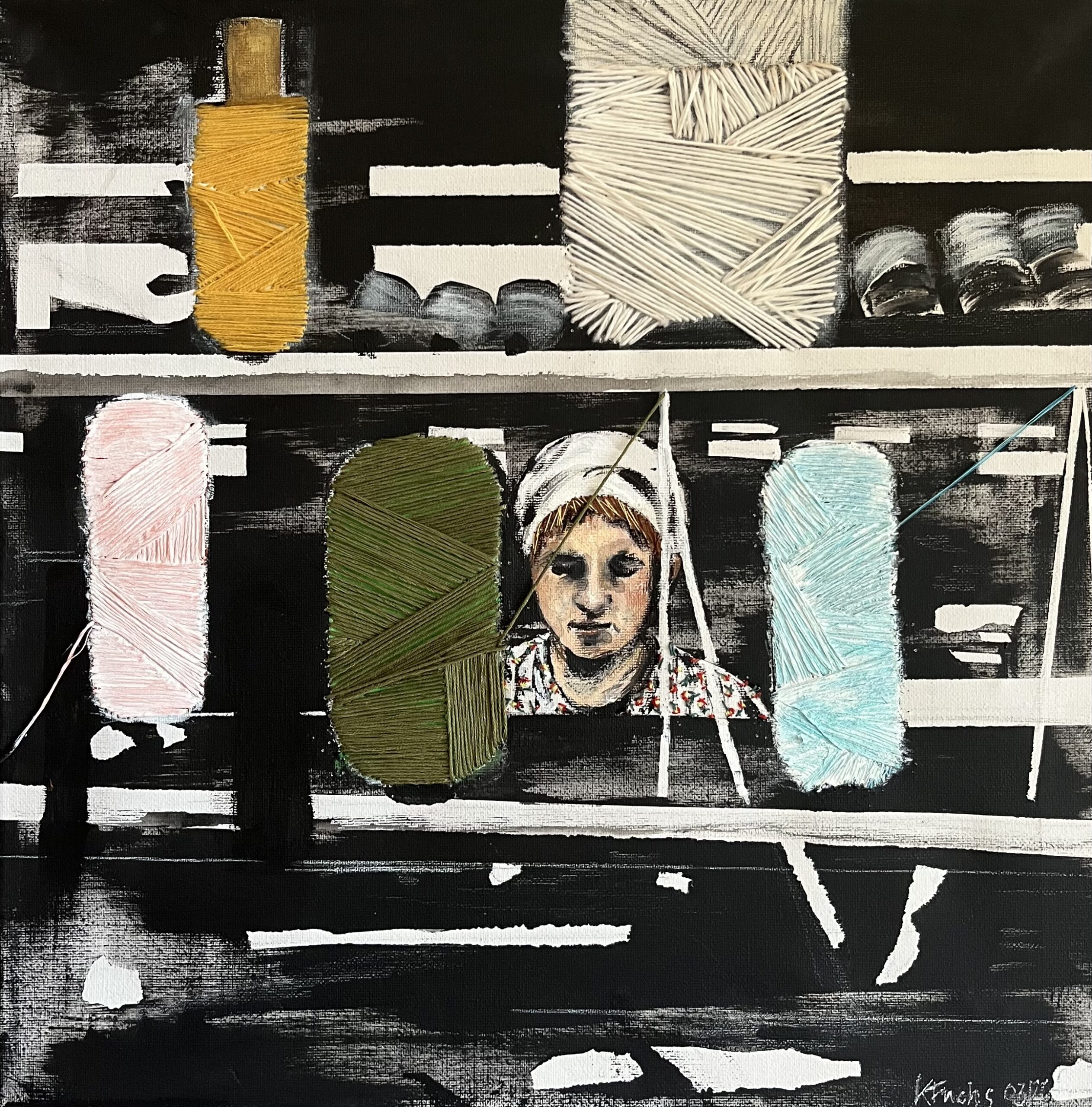 Das Thema Menschen bei der Arbeit beschäftigt Karin Fuchs schon seit langem, angefangen hat es mit Strickenden — inklusive selbstangefertigtem, aufgeklebtem Strickwerk. Aber auch Malende, Töpfernde, Korbflechtende, Spinnende, Plastizierende… begegnen Ihnen hier.